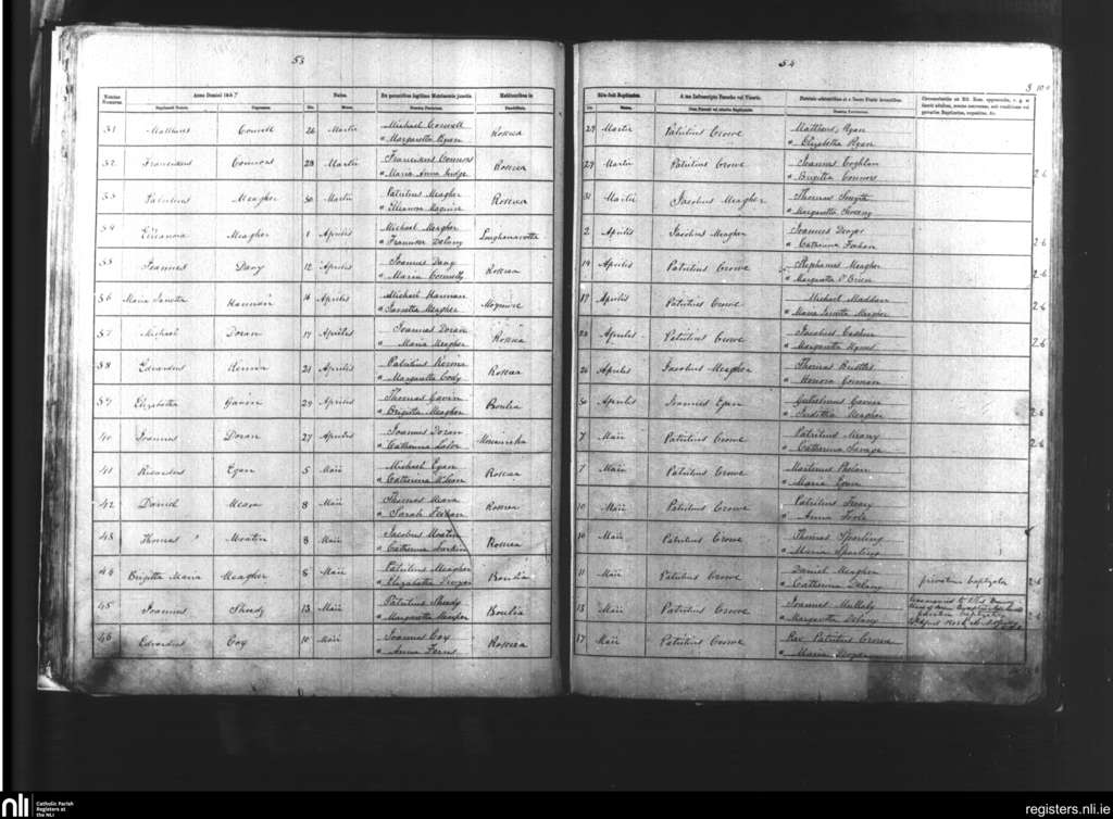 Roscrea; County of Tipperary, Laois, Offaly; Diocese of Killaloe. Baptisms, Mar. 1867 to May 1867