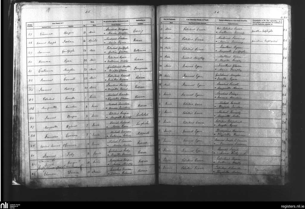 Roscrea; County of Tipperary, Laois, Offaly; Diocese of Killaloe. Baptisms, May 1867 to June 1867