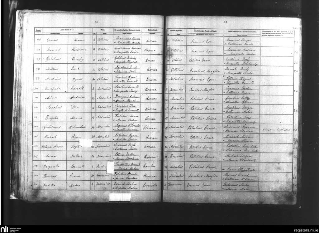 Roscrea; County of Tipperary, Laois, Offaly; Diocese of Killaloe. Baptisms, Oct. 1867 to Dec. 1867