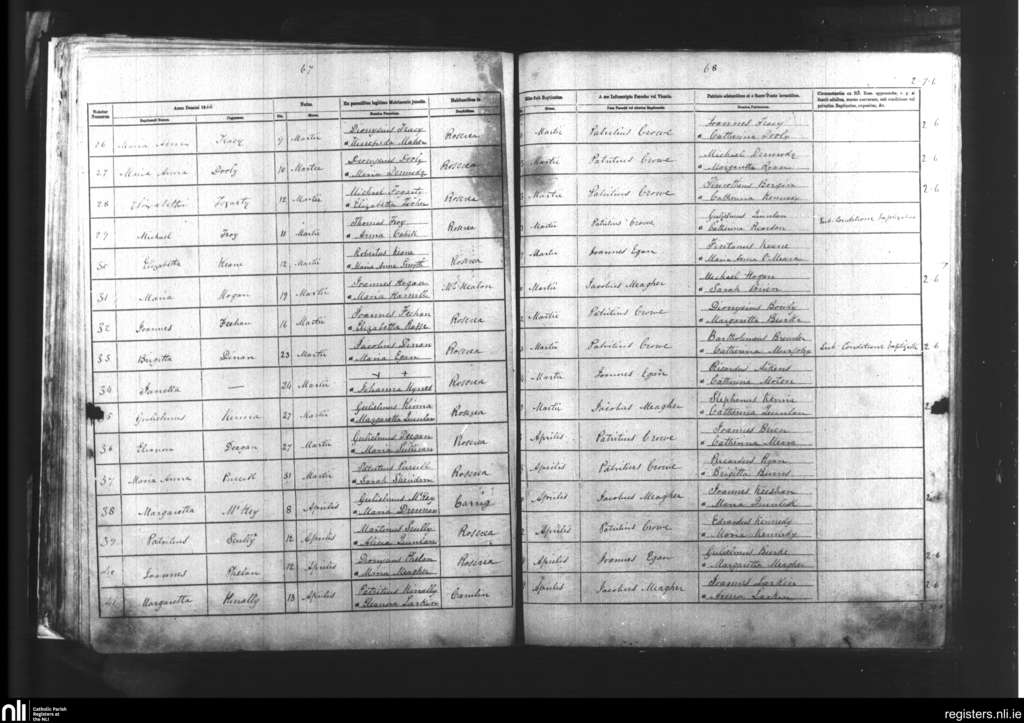 Roscrea; County of Tipperary, Laois, Offaly; Diocese of Killaloe. Baptisms, Mar. 1868 to Apr. 1868