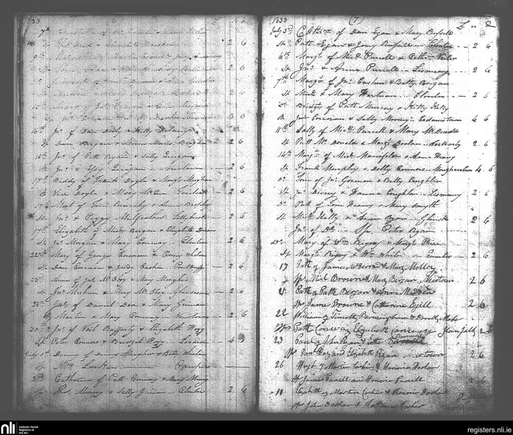 Roscumroe; County of Offaly; Diocese of Killaloe. Baptisms, June 1833 to July 1833