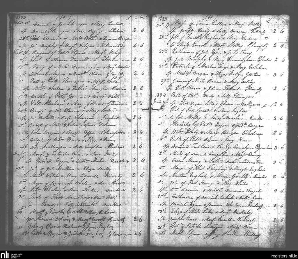Roscumroe; County of Offaly; Diocese of Killaloe. Baptisms, Oct. 1833 to Jan. 1834