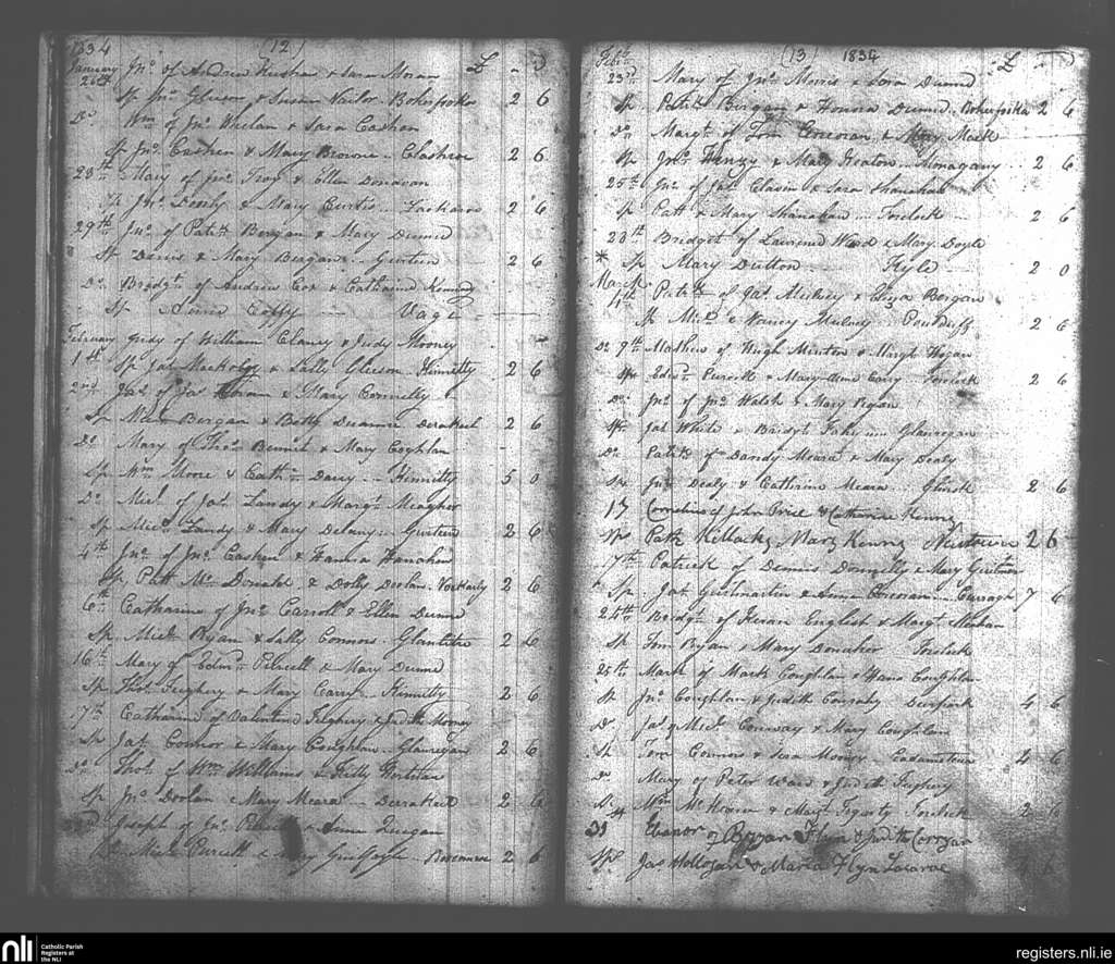 Roscumroe; County of Offaly; Diocese of Killaloe. Baptisms, Jan. 1834 to Mar. 1834