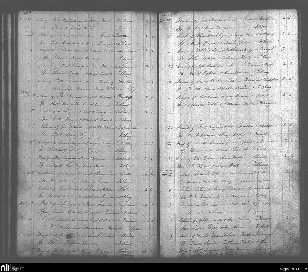 Roscumroe; County of Offaly; Diocese of Killaloe. Baptisms, Dec. 1839 to Mar. 1840