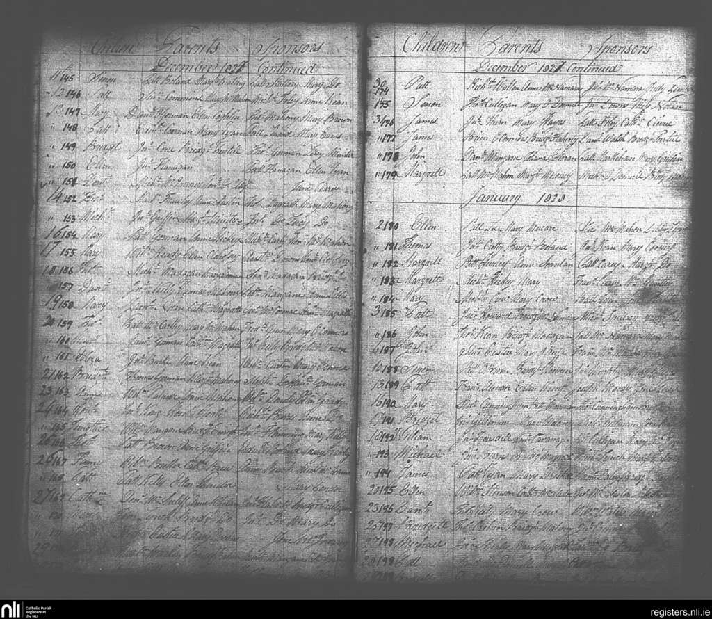 St. Senan's; County of Clare; Diocese of Killaloe. Baptisms, Dec. 1827 to Jan. 1828