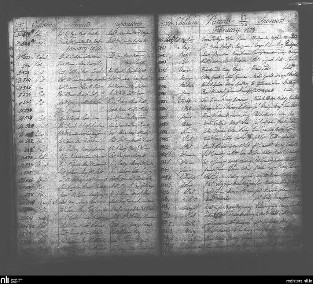St. Senan's; County of Clare; Diocese of Killaloe. Baptisms, Dec. 1828 to Feb. 1829