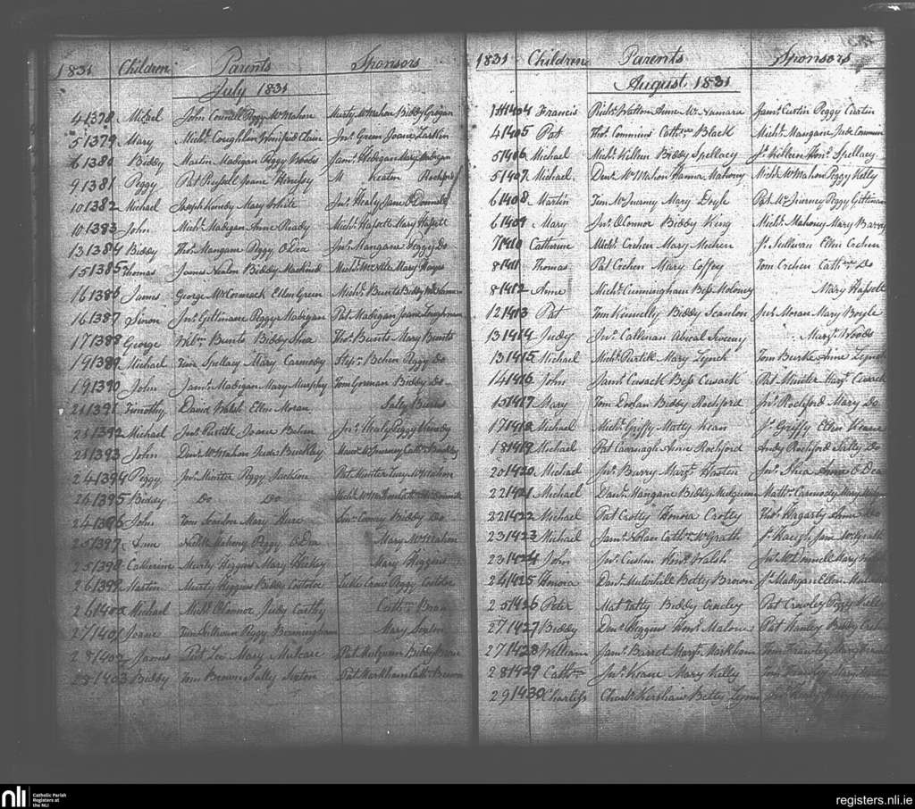 St. Senan's; County of Clare; Diocese of Killaloe. Baptisms, July 1831 to Aug. 1831