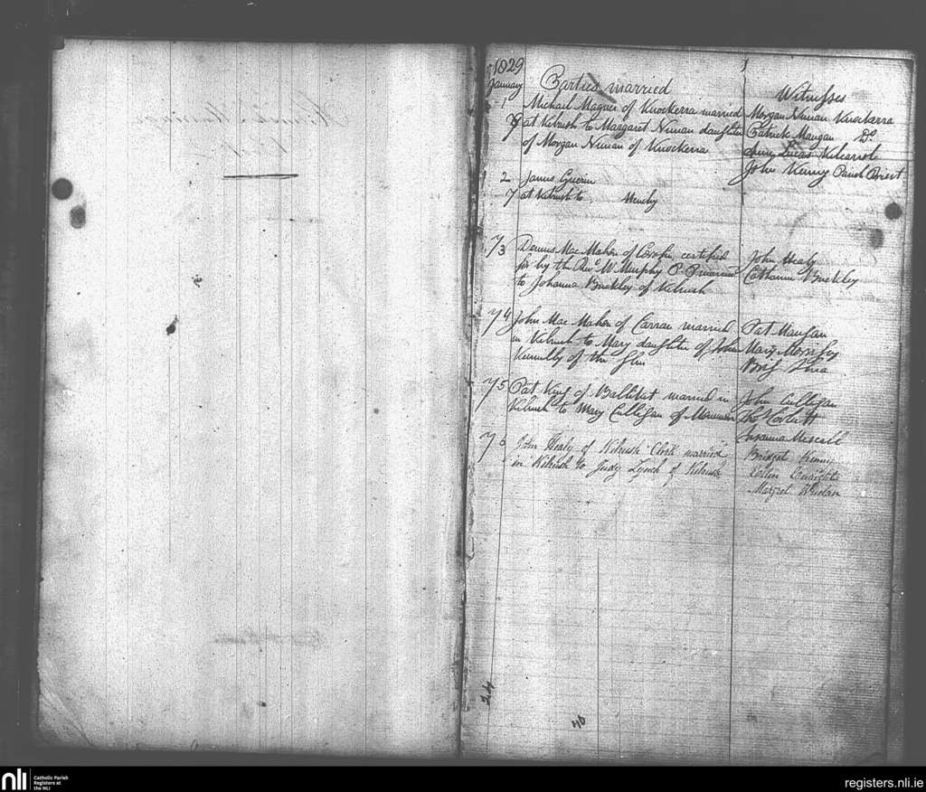 St. Senan's; County of Clare; Diocese of Killaloe. Marriages, Jan. 1829