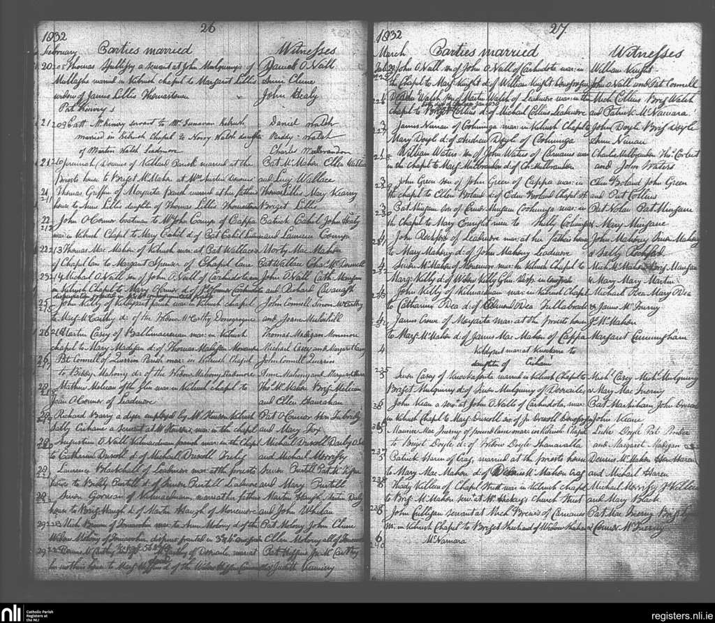 St. Senan's; County of Clare; Diocese of Killaloe. Marriages, Feb. 1832 to Mar. 1832