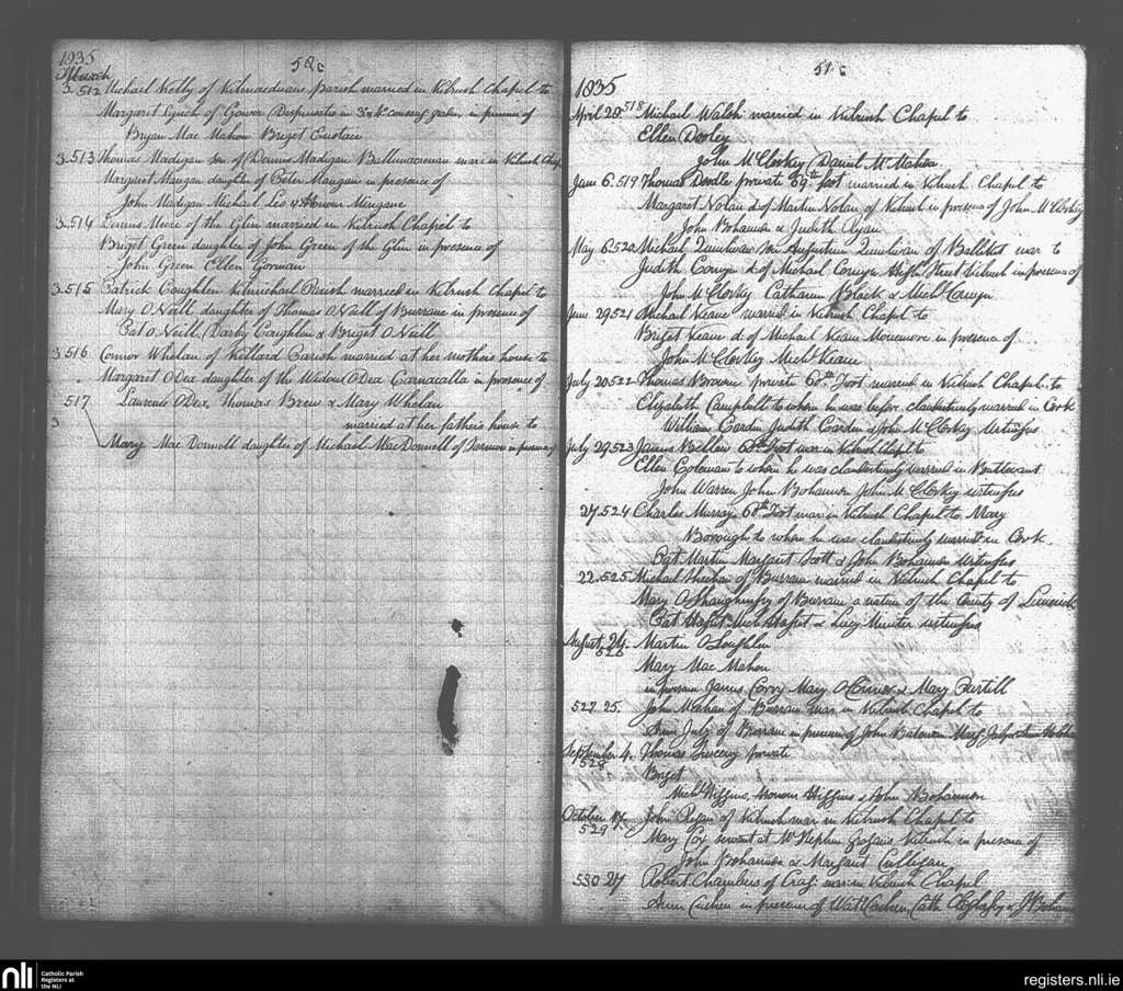 St. Senan's; County of Clare; Diocese of Killaloe. Marriages, Mar. 1835 to Oct. 1835