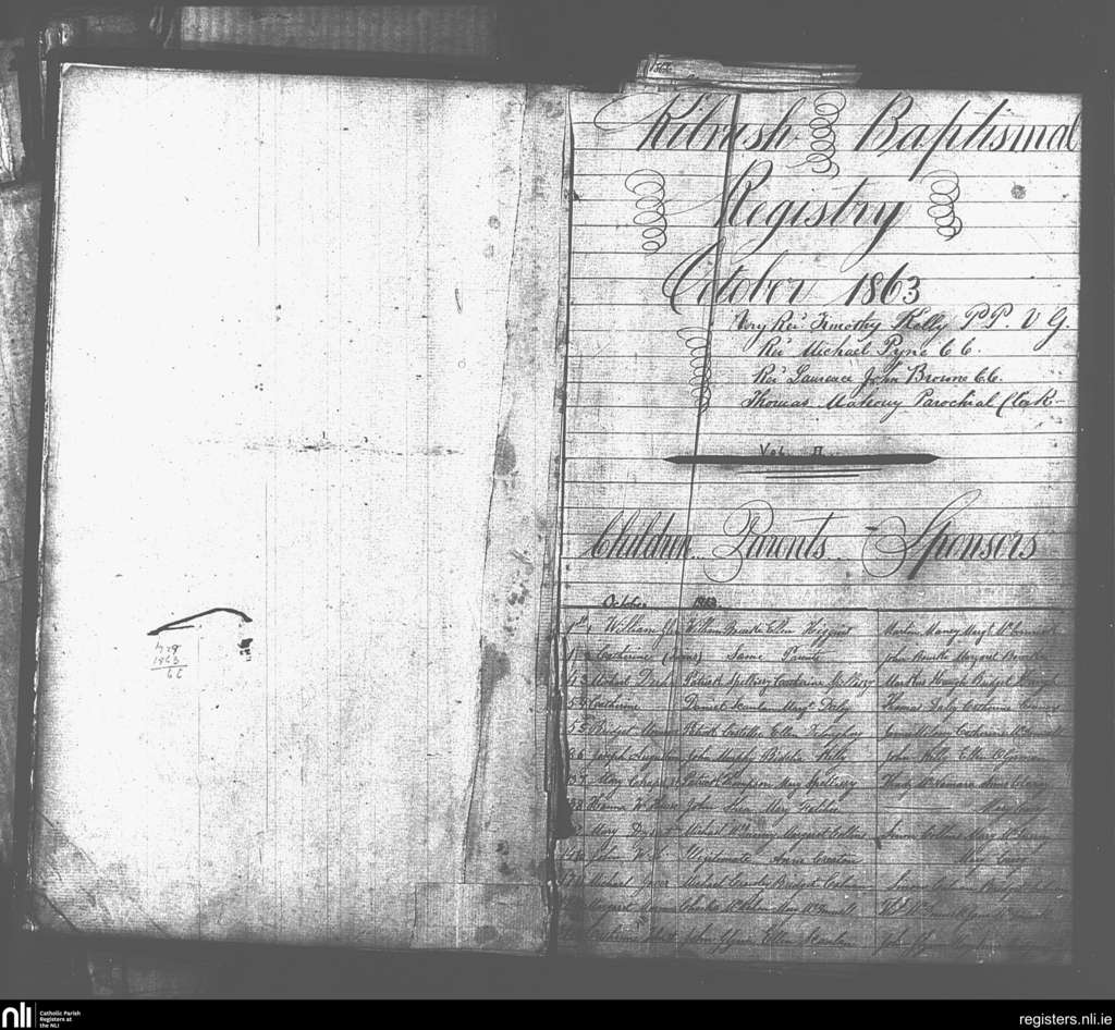 St. Senan's; County of Clare; Diocese of Killaloe. Baptisms, Oct. 1863