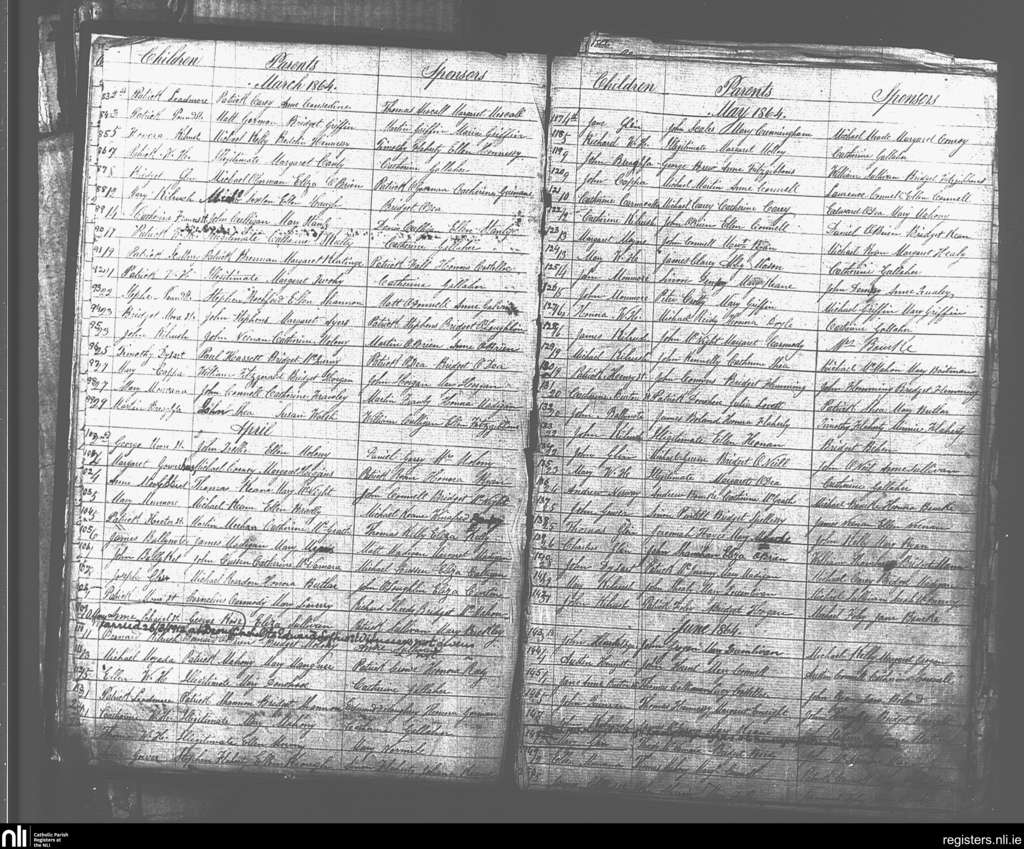 St. Senan's; County of Clare; Diocese of Killaloe. Baptisms, Mar. 1864 to June 1864