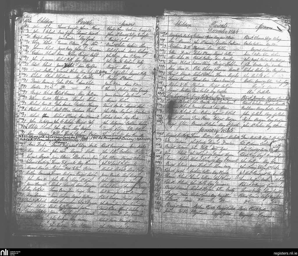 St. Senan's; County of Clare; Diocese of Killaloe. Baptisms, Oct. 1864 to Jan. 1865