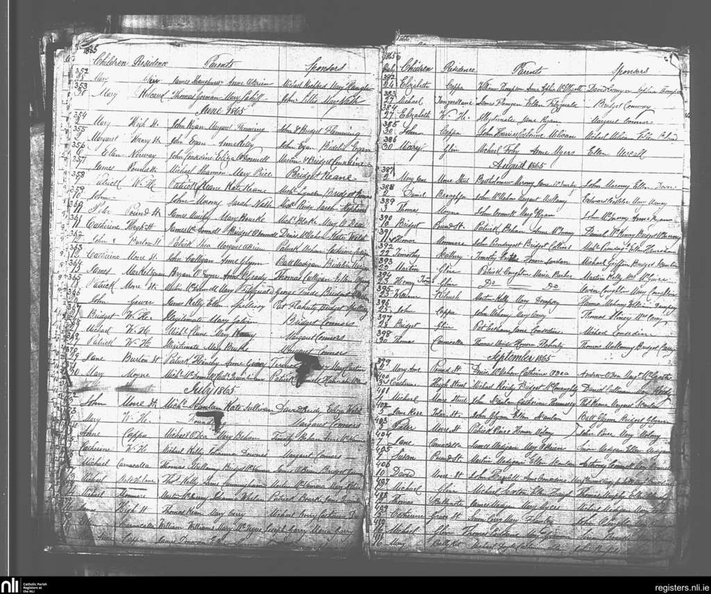 St. Senan's; County of Clare; Diocese of Killaloe. Baptisms, May 1865 to Sep. 1865