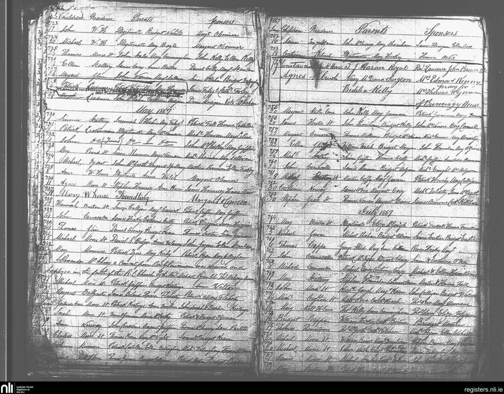 St. Senan's; County of Clare; Diocese of Killaloe. Baptisms, Apr. 1867 to July 1867