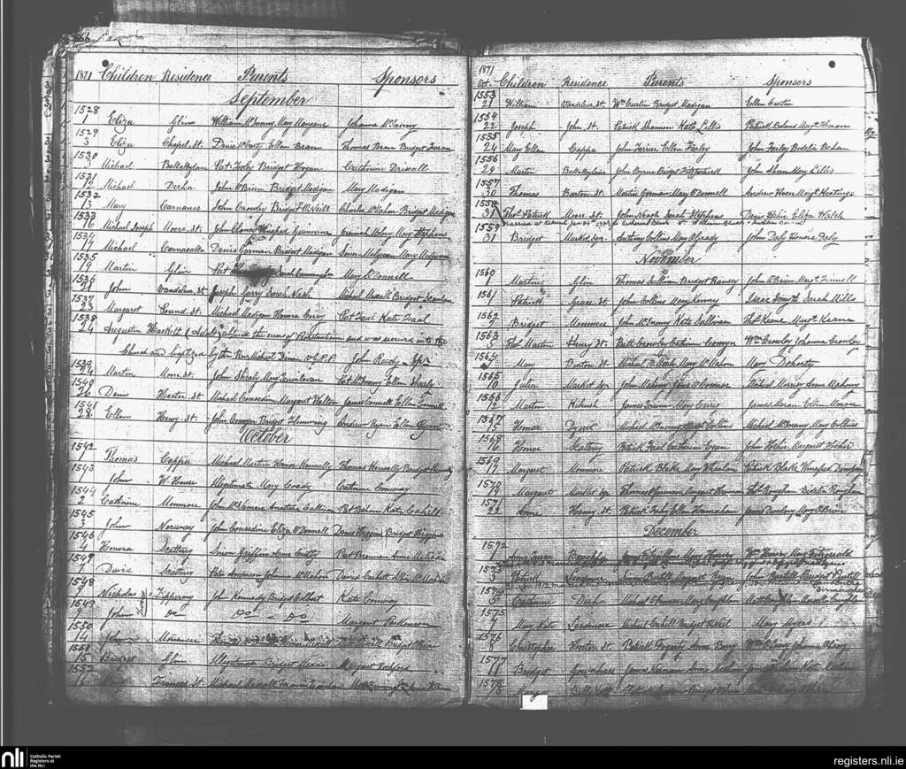 St. Senan's; County of Clare; Diocese of Killaloe. Baptisms, Sep. 1871 to Dec. 1871