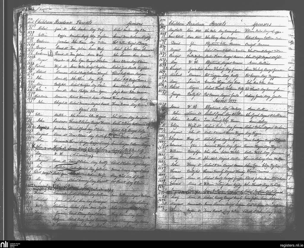 St. Senan's; County of Clare; Diocese of Killaloe. Baptisms, Mar. 1872 to June 1872