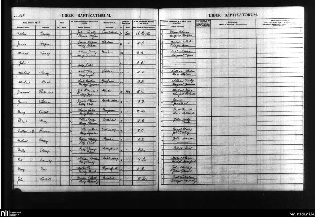 Terryglass; County of Tipperary; Diocese of Killaloe. Baptisms, Jan. 1838 to Feb. 1838