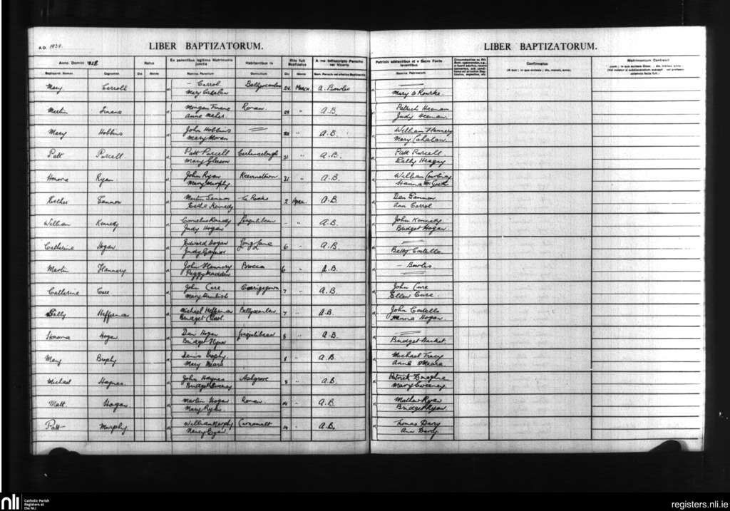 Terryglass; County of Tipperary; Diocese of Killaloe. Baptisms, Mar. 1838 to Apr. 1838
