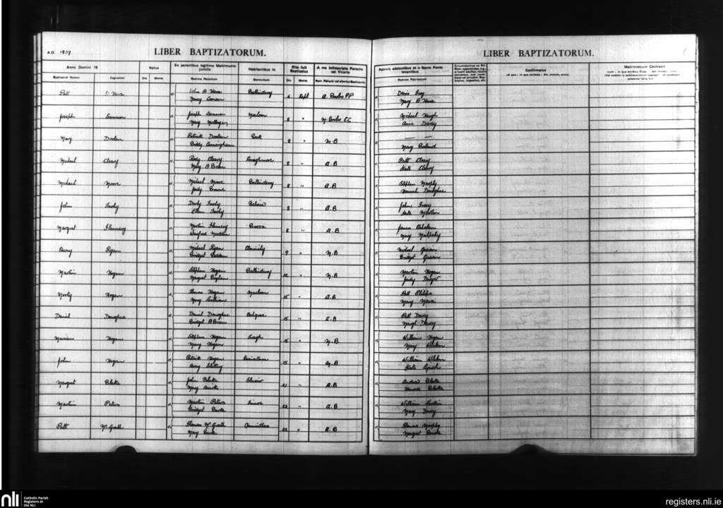 Terryglass; County of Tipperary; Diocese of Killaloe. Baptisms, Sep. 1839