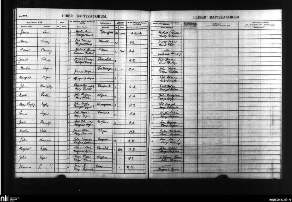 Terryglass; County of Tipperary; Diocese of Killaloe. Baptisms, Sep. 1839 to Dec. 1839