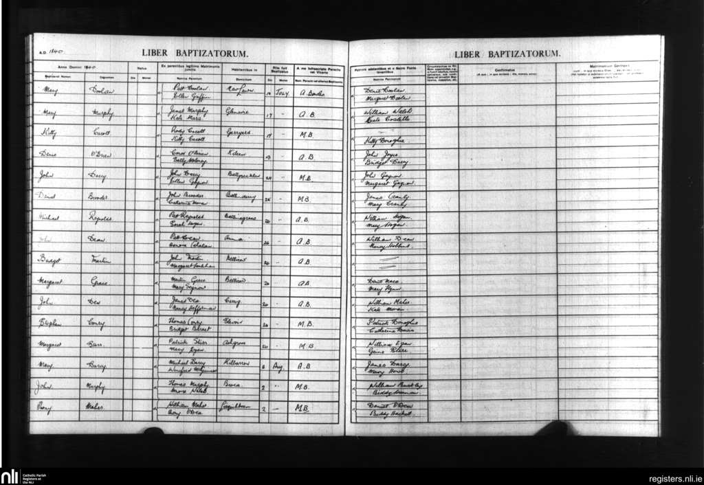Terryglass; County of Tipperary; Diocese of Killaloe. Baptisms, July 1840 to Aug. 1840
