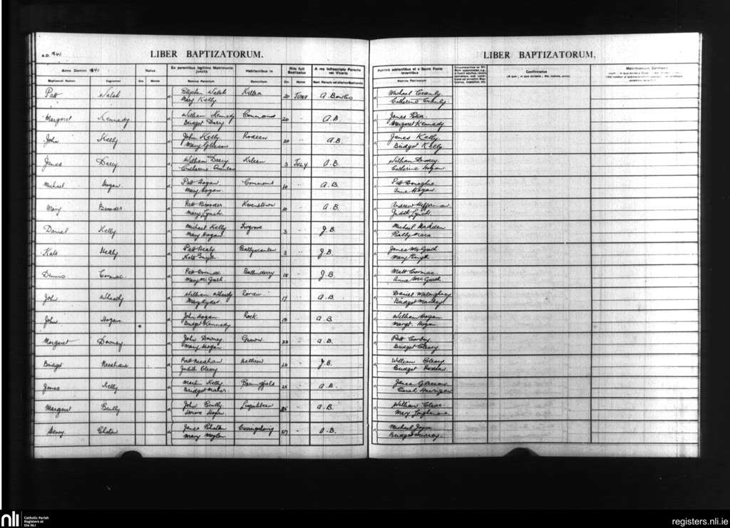 Terryglass; County of Tipperary; Diocese of Killaloe. Baptisms, June 1841 to July 1841