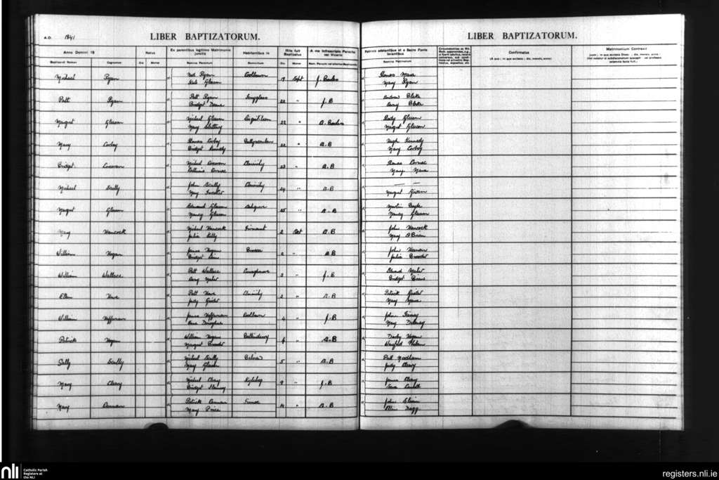 Terryglass; County of Tipperary; Diocese of Killaloe. Baptisms, Sep. 1841 to Oct. 1841