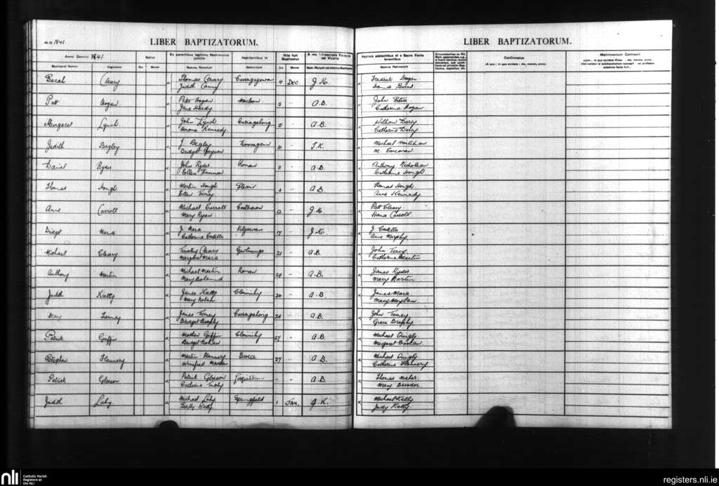 Terryglass; County of Tipperary; Diocese of Killaloe. Baptisms, Dec. 1841 to Jan. 1842