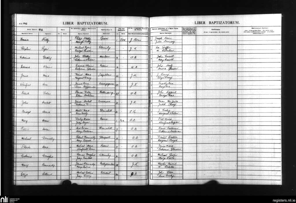 Terryglass; County of Tipperary; Diocese of Killaloe. Baptisms, Jan. 1842 to Feb. 1842