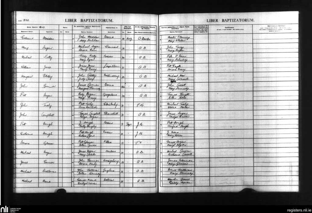 Terryglass; County of Tipperary; Diocese of Killaloe. Baptisms, Aug. 1842 to Sep. 1842