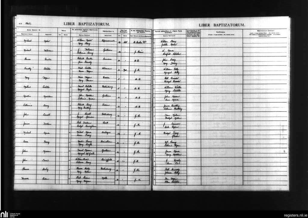 Terryglass; County of Tipperary; Diocese of Killaloe. Baptisms, Oct. 1842 to Nov. 1842