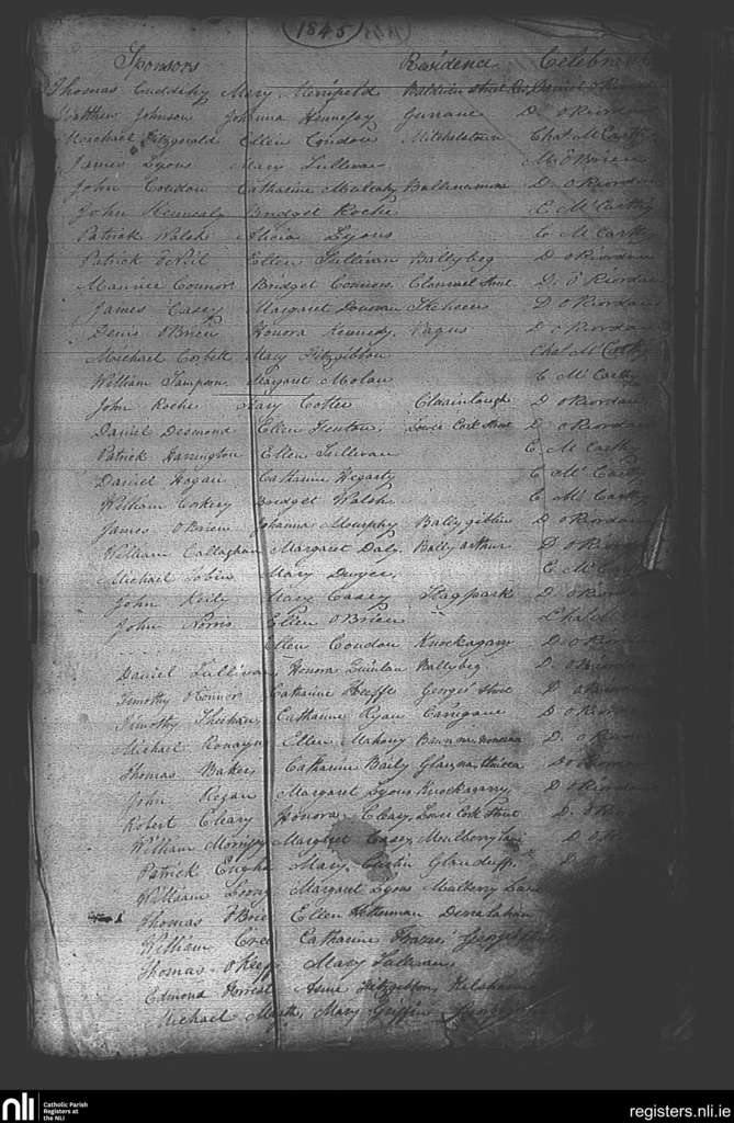 Mitchelstown; County of Cork; Diocese of Cloyne. Baptisms, July 1845 to Aug. 1845