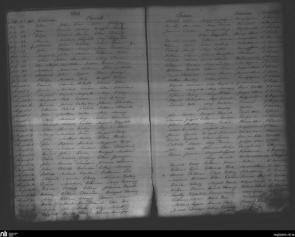 Mitchelstown; County of Cork; Diocese of Cloyne. Baptisms, July 1848 to Sep. 1848