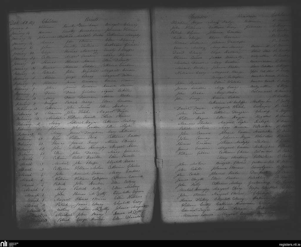 Mitchelstown; County of Cork; Diocese of Cloyne. Baptisms, Jan. 1849 to Mar. 1849