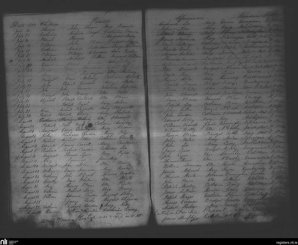 Mitchelstown; County of Cork; Diocese of Cloyne. Baptisms, July 1850 to Aug. 1850