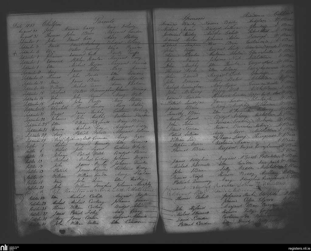 Mitchelstown; County of Cork; Diocese of Cloyne. Baptisms, Aug. 1850 to Oct. 1850