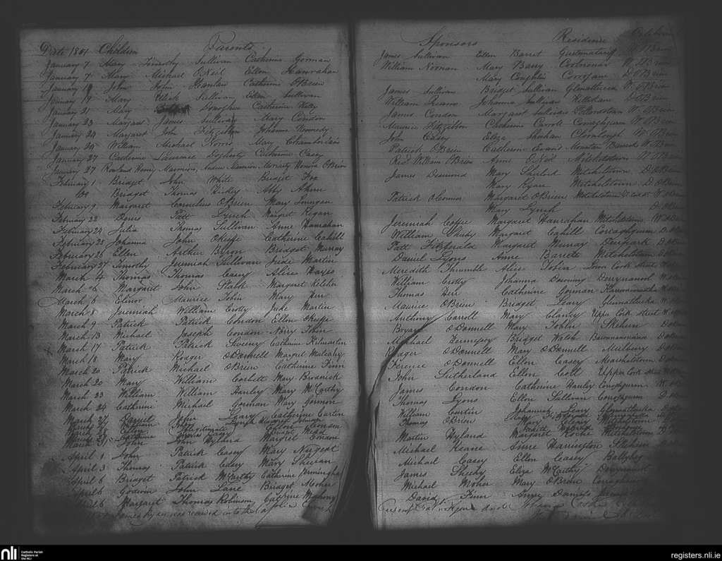 Mitchelstown; County of Cork; Diocese of Cloyne. Baptisms, Jan. 1851 to Apr. 1851