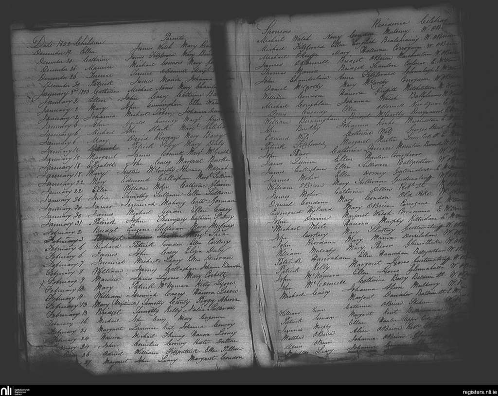 Mitchelstown; County of Cork; Diocese of Cloyne. Baptisms, Dec. 1852 to Feb. 1853
