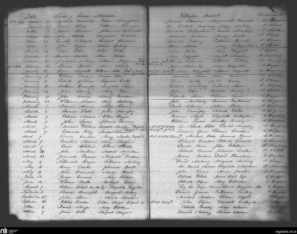 Mitchelstown; County of Cork; Diocese of Cloyne. Marriages, Sep. 1847 to Oct. 1848