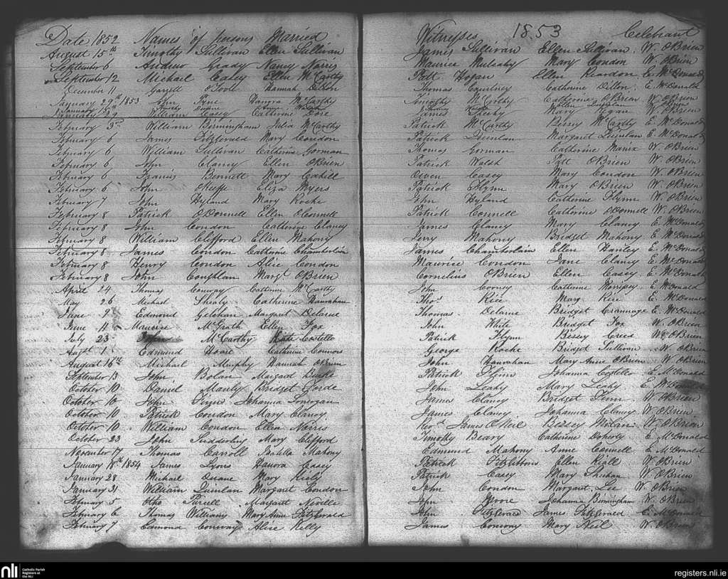 Mitchelstown; County of Cork; Diocese of Cloyne. Marriages, Aug. 1852 to Feb. 1854