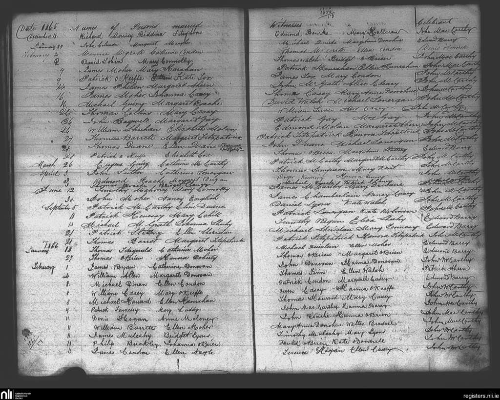 Mitchelstown; County of Cork; Diocese of Cloyne. Marriages, Dec. 1864 to Feb. 1866