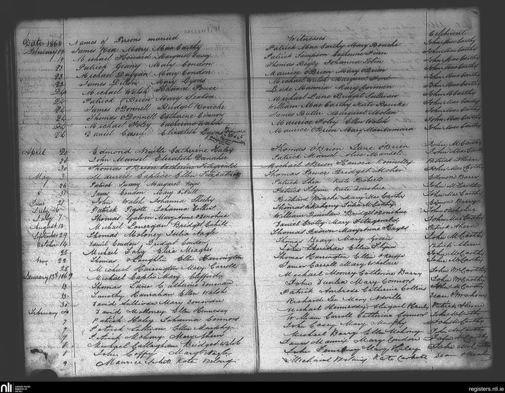 Mitchelstown; County of Cork; Diocese of Cloyne. Marriages, Feb. 1868 to Feb. 1869