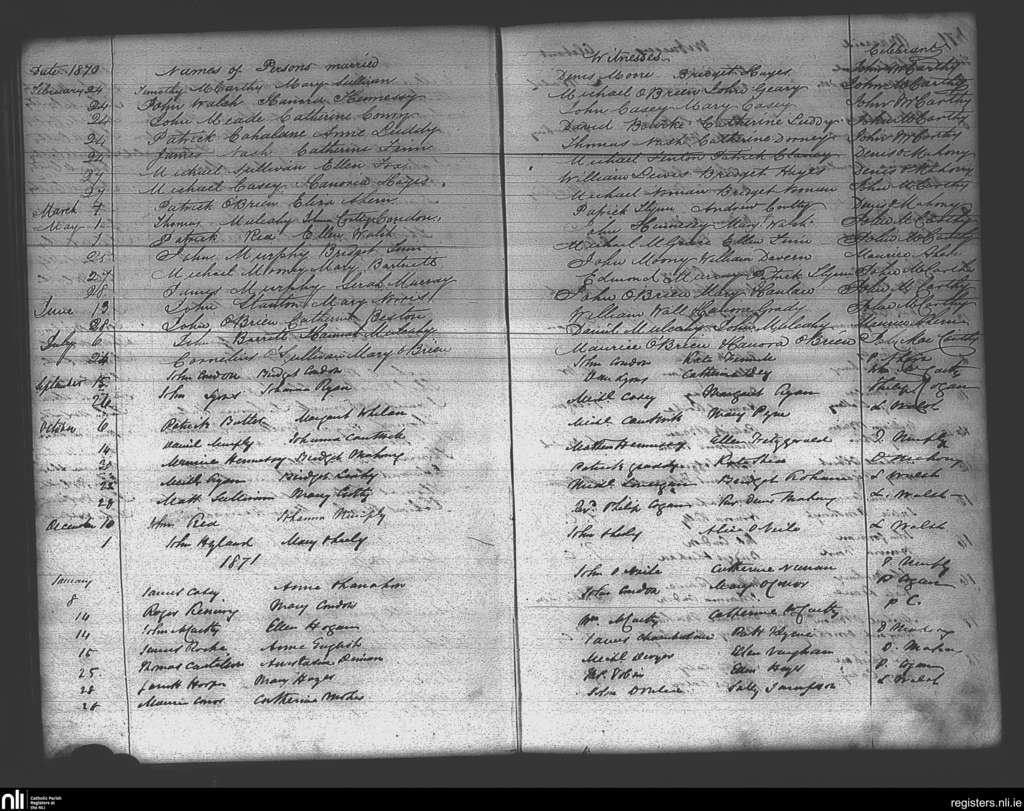 Mitchelstown; County of Cork; Diocese of Cloyne. Marriages, Feb. 1870 to Jan. 1871