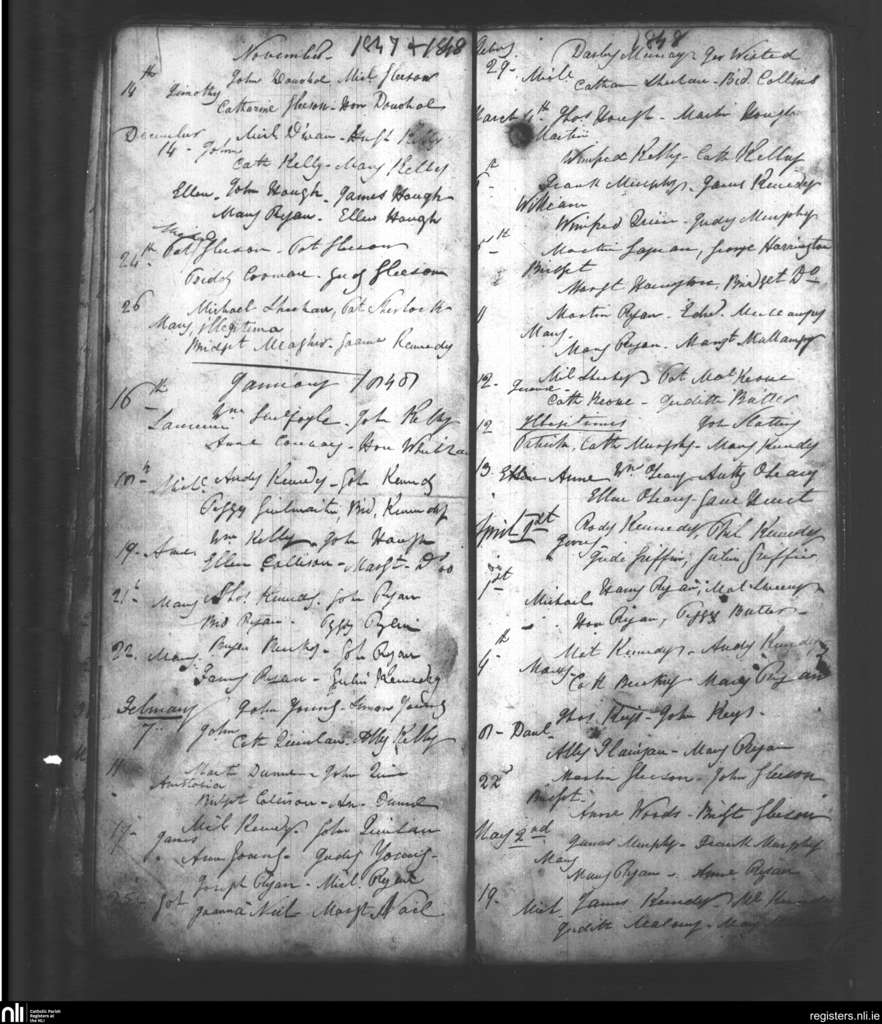 Templederry; County of Tipperary; Diocese of Killaloe. Baptisms, Nov. 1847 to May 1848