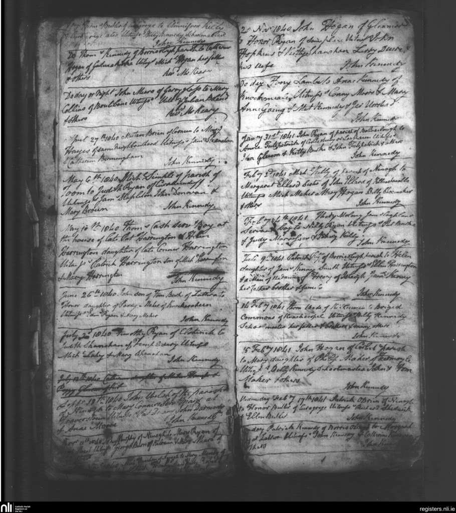 Templederry; County of Tipperary; Diocese of Killaloe. Marriages, Mar. 1840 to Feb. 1841