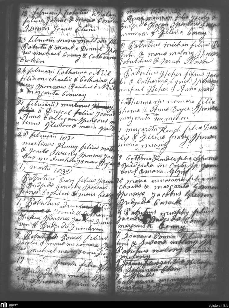 Sixmilebridge; County of Clare; Diocese of Killaloe. Baptisms, Feb. 1830 to Apr. 1830