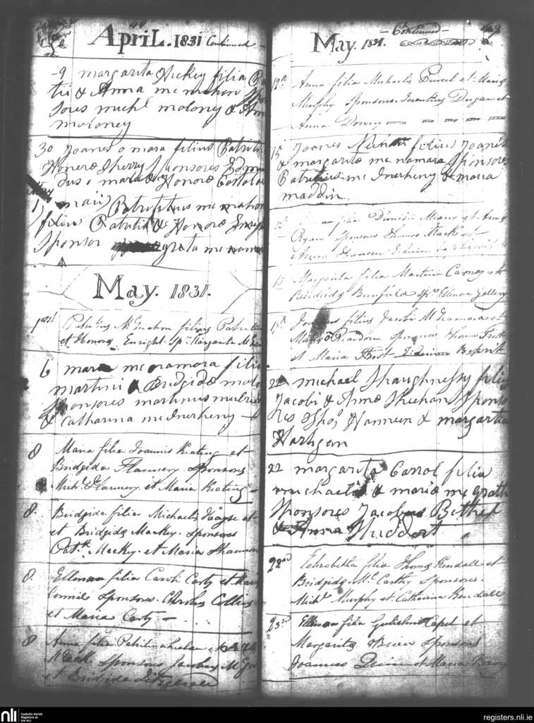Sixmilebridge; County of Clare; Diocese of Killaloe. Baptisms, Apr. 1831 to May 1831