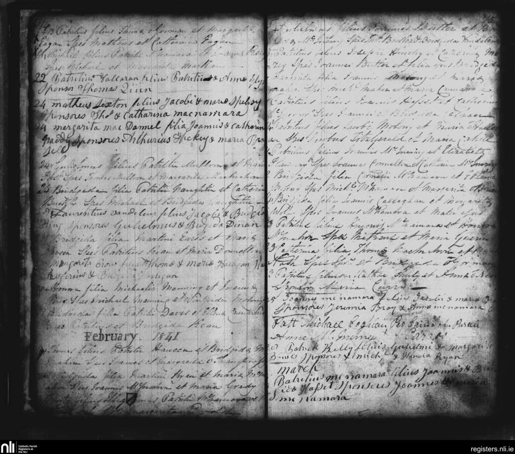 Sixmilebridge; County of Clare; Diocese of Killaloe. Baptisms, Jan. 1841 to Mar. 1841