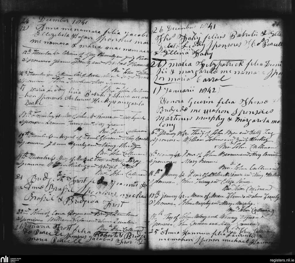 Sixmilebridge; County of Clare; Diocese of Killaloe. Baptisms, Dec. 1841 to Jan. 1842